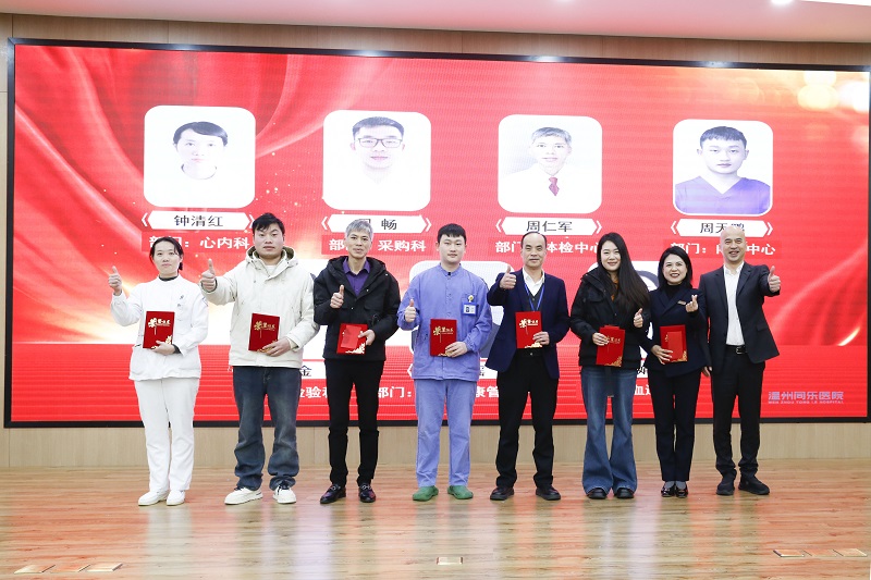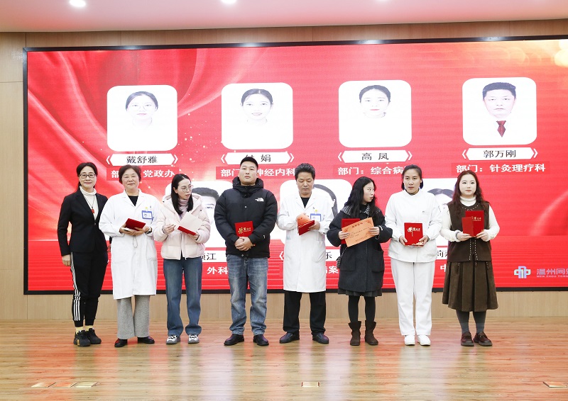 大会举行了2025年度优秀员工颁奖仪式。徐再辉副院长代表医院宣读[温同医〔2026〕1号]表彰文件。在热烈的掌声中,院领导们分别为常冰慧等49名优秀员工进行现场颁奖。