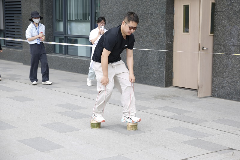选手们踩上两个竹筒高跷就开始前进,选手们有选择大步伐前进,双腿如钟摆般交替迈开,每一步都带着“必赢”的气势;也有采用小碎步策略,高跷以快速的频率轻叩地面,步伐虽小却节奏稳定。这一关的选手有着共同目标,就是要快速地、零失误地全速前进。